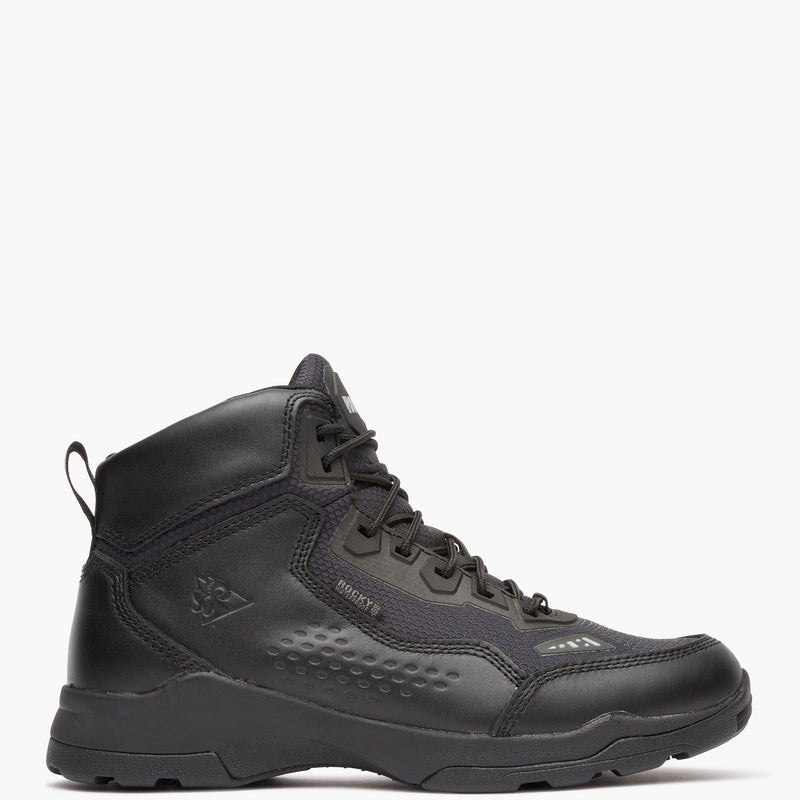 Rocky Waterproof construction guarantees dry feet all day. Experience comfort with our patented Comfort Tracks footbed. The EVA midsole and fiberglass shank add stability, allowing you to confidently go about your day in comfort. A high abrasion mesh and PU overlay provide added durability.