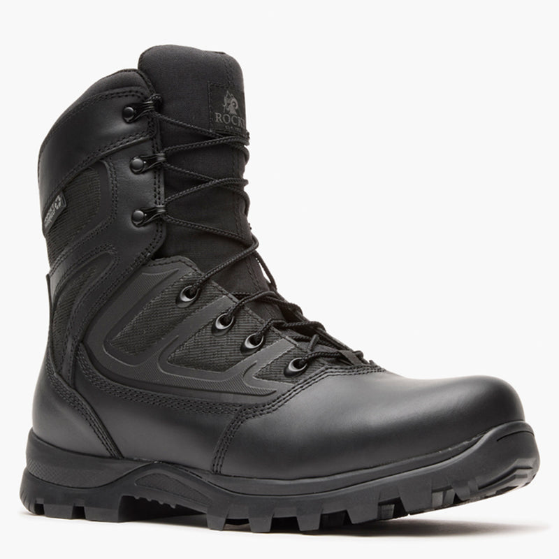 The Rocky Enforcer Collection delivers reliable performance in a streamlined design. Constructed with waterproof full-grain leather and breathable tactical mesh, these boots are made to handle long hours and tough environments. The dual-density EVA/rubber outsole offers oil and slip resistance with a smoother, less aggressive tread – ideal for station wear, urban patrol, and everyday use. Inside, the Terra Suspension footbed and fiberglass shank provide support and comfort you can count on through every shift. This 8-inch boot features a composite toe and YKK side zipper for easy wear and protection. Whether you’re on patrol, in the station, or somewhere in between, the Rocky Enforcer keeps you ready.