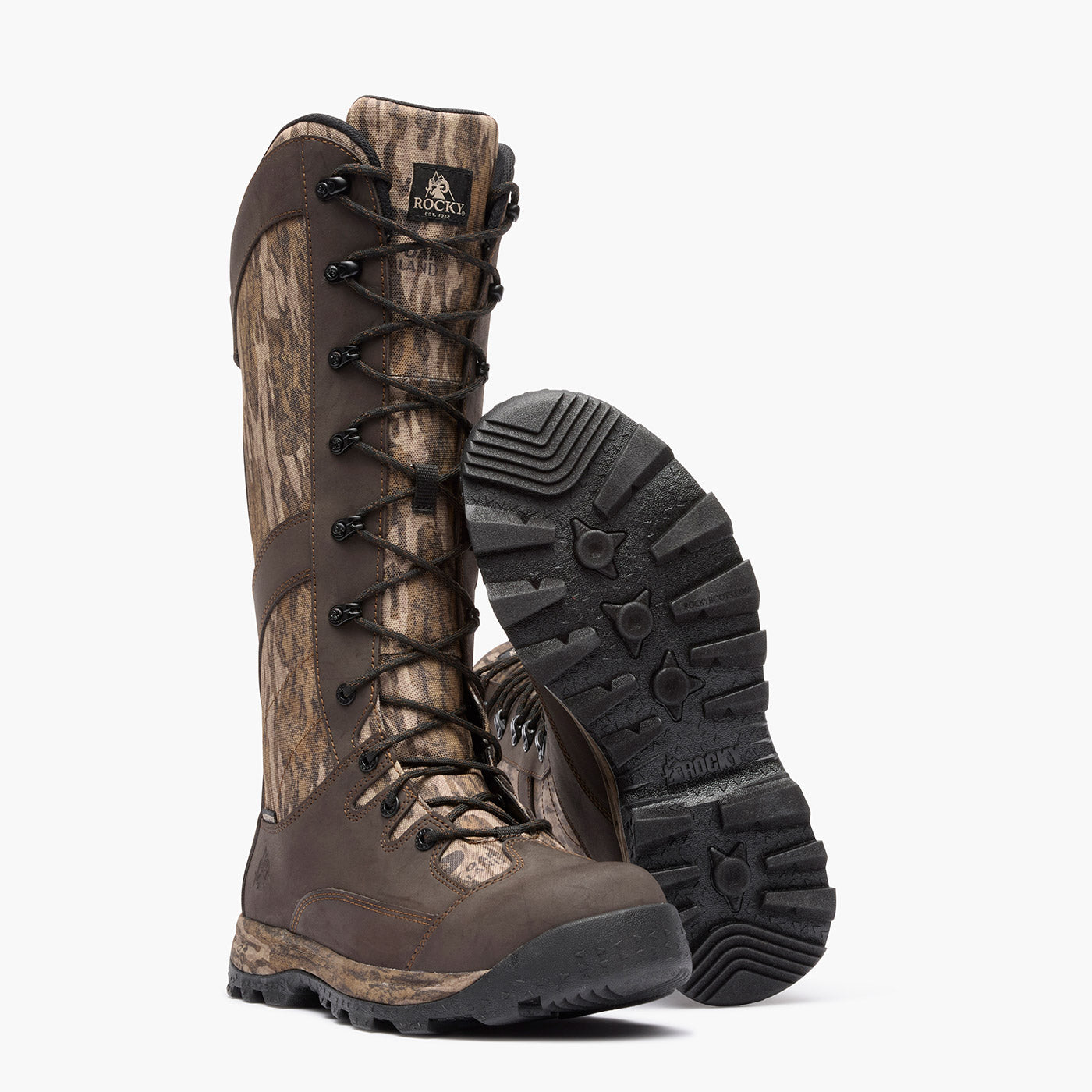 Keep it simple with the Rocky Wildcat, a no-nonsense 16" Snake boot built for performance and value. Its rugged rubber all-terrain outsole paired with a light & flexible shock-absorbing EVA midsole ensures you can confidently venture off-trail in pursuit of the hunt. Waterproof leather with 900 Denier Cordura® Snake Guard with an internal waterproof membrane work together to keep you dry and protected no matter how harsh the elements get. YKK Back Zipper makes it easy to get in and out after a long day. Gear up and let the Rocky Wildcat take you deeper into the great outdoors.