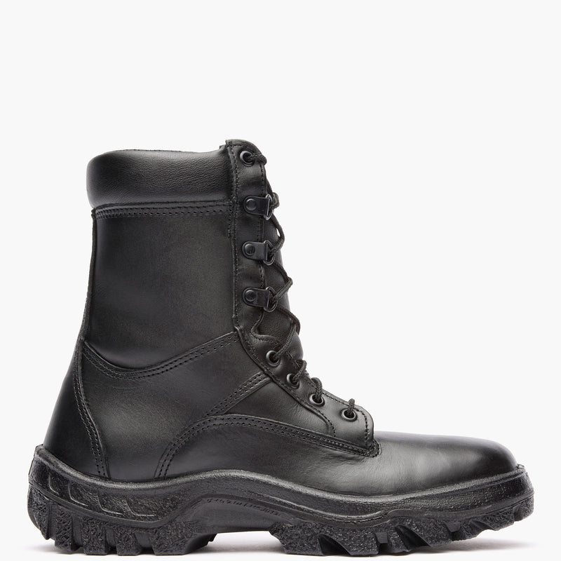When your job calls for slip-resistant, Berry-Compliant (Made in USA) footwear, the Rocky® TMC Public Service Boot is what you want. The black public service boot is made with full-grain leather that can be polished.